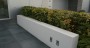Deze tuin sluit aan op de strakke architectuur van de bungalow en de architectonische inrichting. Moderne materialen zoals RVS, beton en natuursteen vormen de basis voor het ontwerp. Tegen de woning, onder het overstek, is een knus terrasje om te kunnen eten. Midden in de tuin is gekozen voor een riant lounge terras. Het terras heeft een klein hoogteverschil dat doorloopt in een RVS-waterelement hangend aan een betonmuur. Deze robuuste muur, deels weggewerkt door sfeervolle beplanting, vormt een scheiding tussen de tuin en de slaapkamers. De voorzijde van het huis is onderhoudsvriendelijk ingericht. Grote vlakken van siergrassen, beuk en hortensia’s zorgen voor rust. Inbouwverlichting, verwerkt in de muren, zorgt voor sfeer en allure in de avond.
